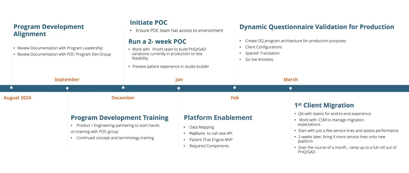 These programs have complex logic that responds based on a patient’s input making each experience unique and personal. The time required to build a single program was lengthy, taking on average 18 weeks.