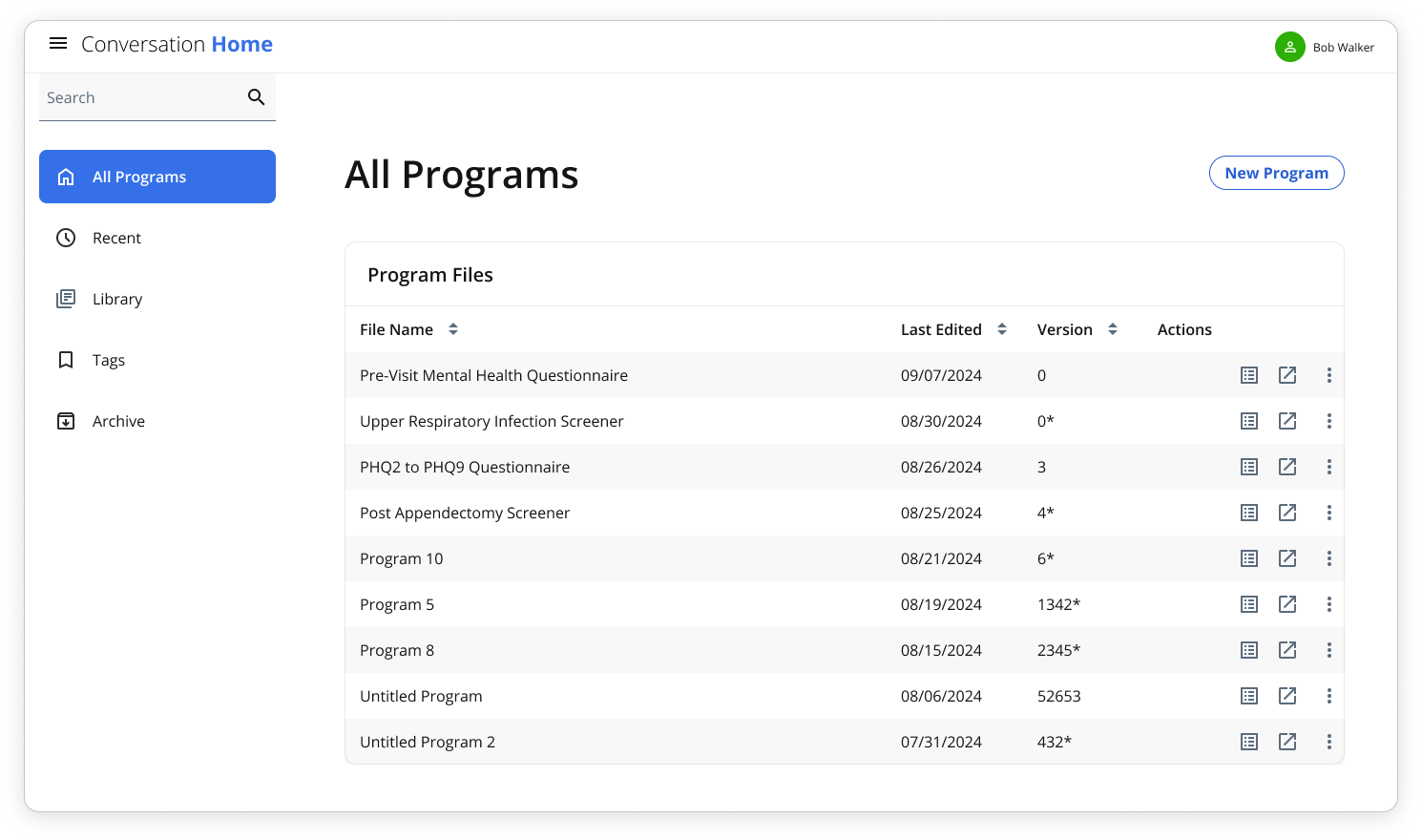 Conversation Home: Programs are viewed, organized and accessed. Also allows to manage shared assets across programs such components, tags and global classes.